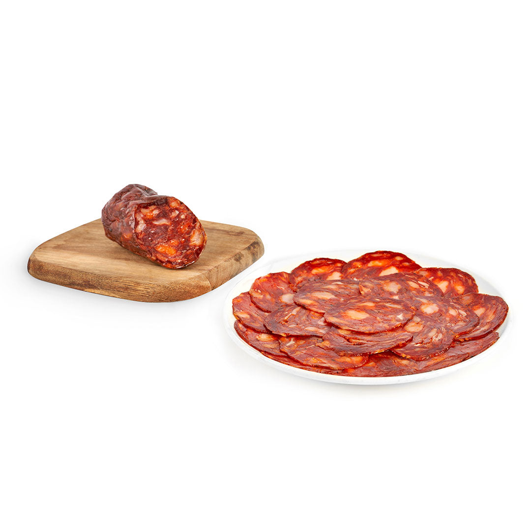Der Chorizo ist eine der Standardwürste der spanischen Gastronomie, hergestellt aus feinsten mageren Schweinefleischteilen und gewürzt mit Paprika und Gewürzen, was ihm seine charakteristische Farbe und seinen Geschmack verleiht. Nach einer kurzen Reifezeit können wir eine einzigartige Wurst genießen, die in unserer Küche unentbehrlich ist.