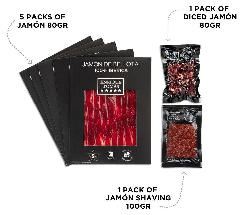- 5 packs of jamón (80 g each)