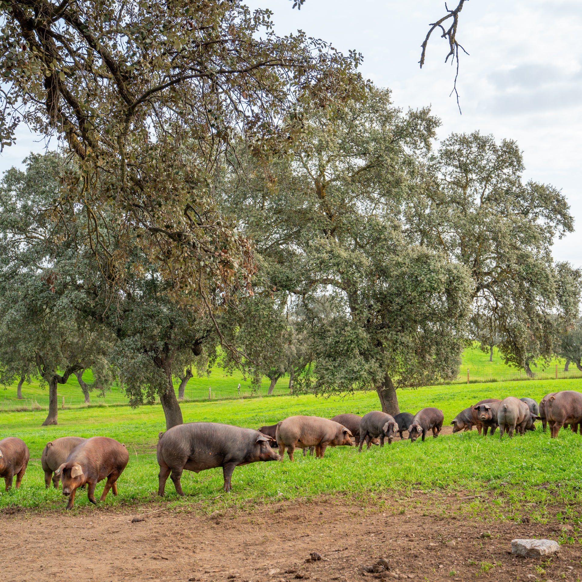 Le pata negra est le jambon ibérique de qualité supérieure, comme son nom l'indique, il s'agit d'un jambon provenant du porc ibérique, une race autochtone et unique dans la péninsule ibérique. Dans ce cas, il est issu de parents 100 % ibériques, ce qui garantit la pureté incontestable de sa race. Les porcs 100 % ibériques sont destinés à la « Montanera ». C'est ce qui définit leur alimentation et leur mode de vie et confère au jambon une valeur gastronomique incroyable. Les porcs ibériques se distinguent des autres porcs et animaux dans le monde par leur capacité à infiltrer de la graisse dans leurs muscles. Ils obtiennent cette graisse grâce à une alimentation à base de glands et d'autres fruits sauvages caractéristiques des pâturages, où vivent les porcs ibériques pendant l'automne et l'hiver. De plus, pendant la montanera, ils ne se contentent pas de recevoir cette alimentation si précieuse, mais ils font également de l'exercice. Cela leur permet de développer leurs muscles et de prendre du poids. En définitive, tous ces facteurs donnent naissance à un jambon avec un type de viande et de graisse unique, qui rend chaque morceau délicieux.