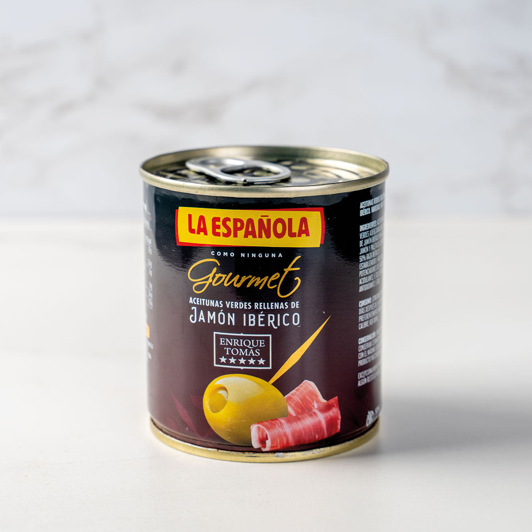 La collaboration entre Enrique Tomás et La Española donne vie aux olives de jamón, une combinaison unique qui fusionne l'intensité du jambon ibérique avec la fraîcheur des olives. Une collation originale qui réinvente le goût traditionnel et conquiert le palais à chaque bouchée.