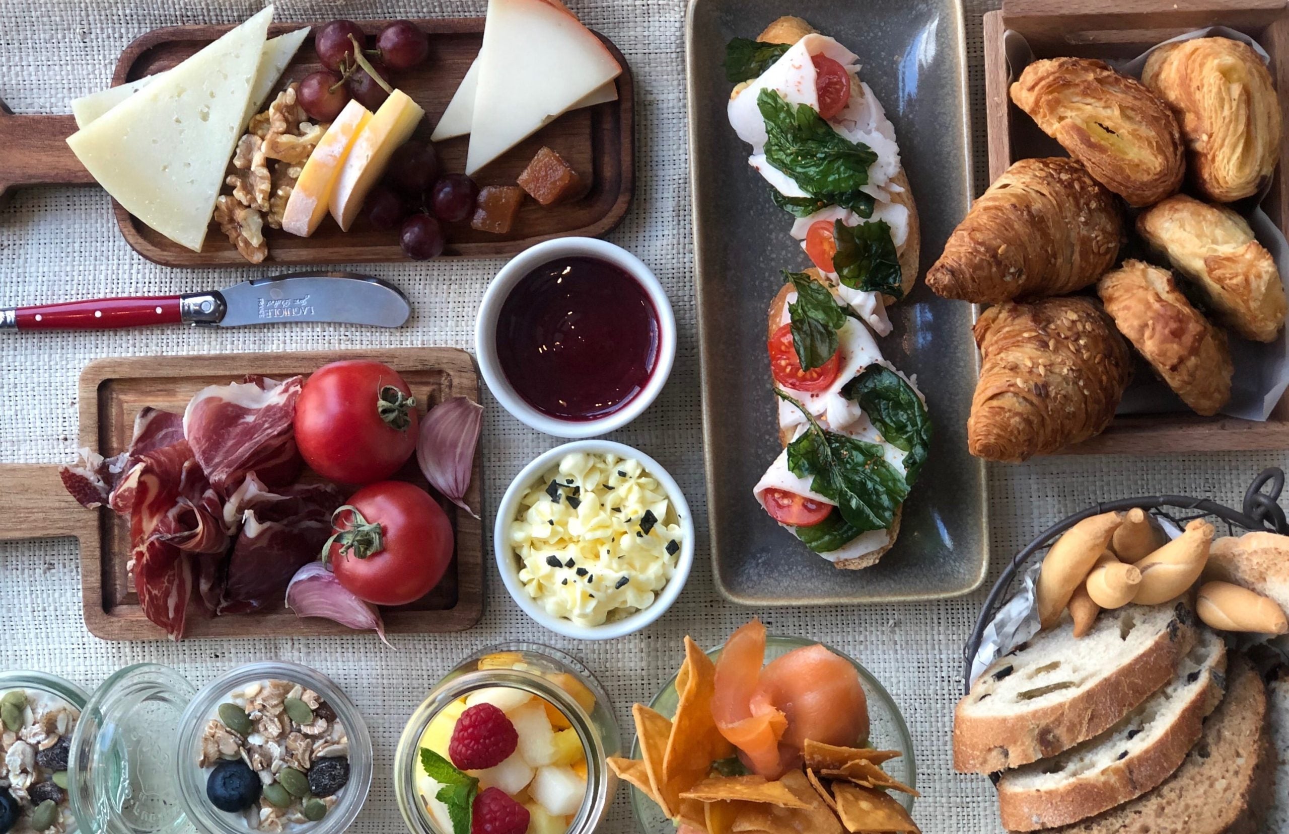 Enrique Tomás ofrece un servicio de cátering de desayuno con una selección premium de productos ibéricos, ideal para comenzar el día con un toque gourmet.