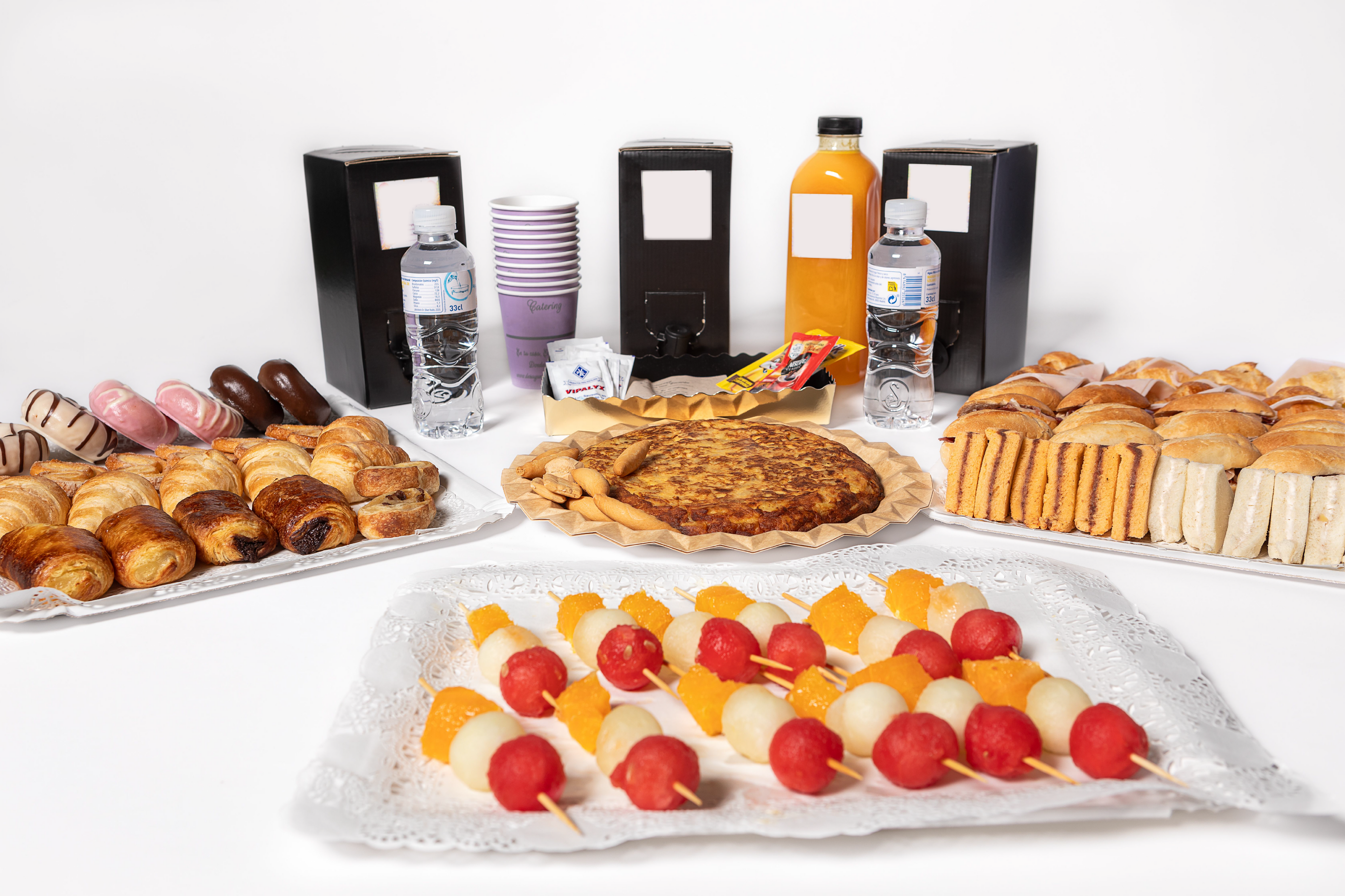 Ofrecemos la opción desde bandejitas con producto seleccionado hasta un cátering buffet de desayuno.