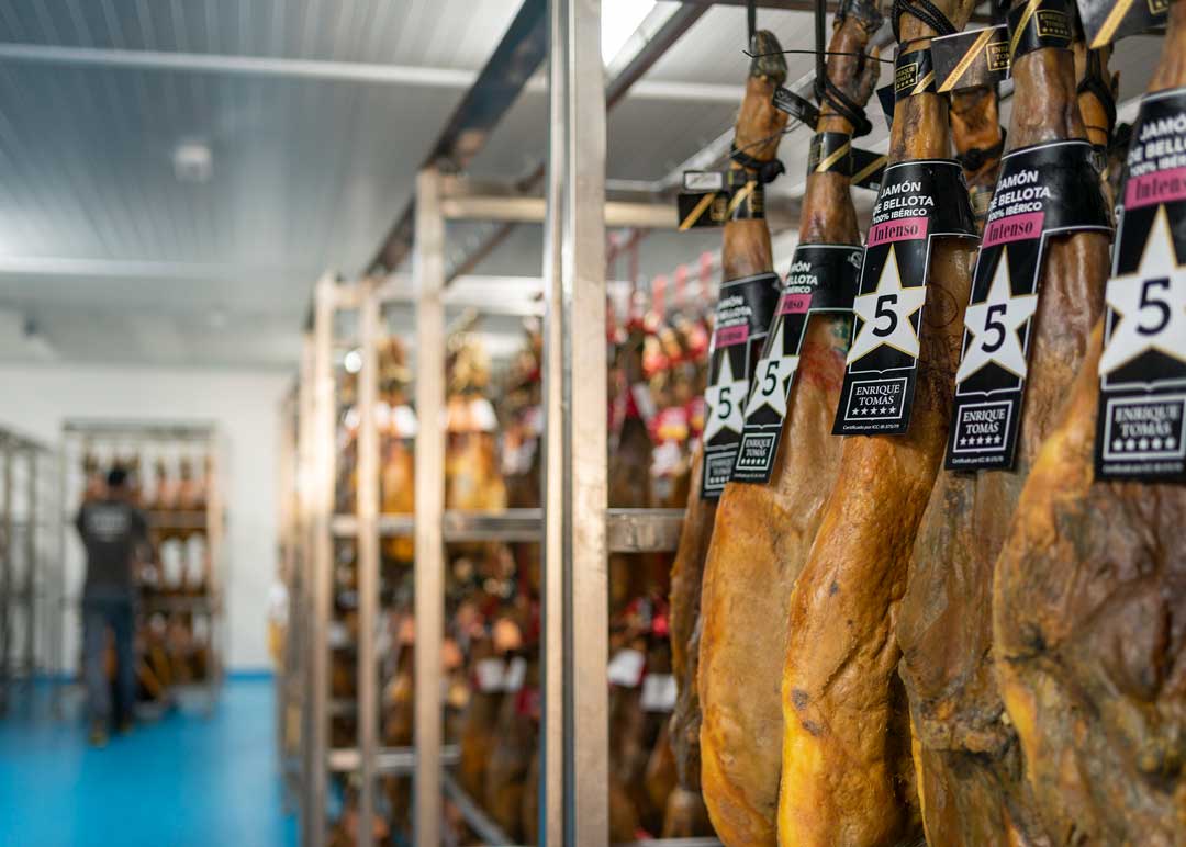 En nuestro almacén, los expertos jamoneros de Enrique Tomás examinan cada jamón para asegurarse de que cumple con nuestro estándar de calidad. Si no cumplen con nuestras expectativas, se devuelven al productor.