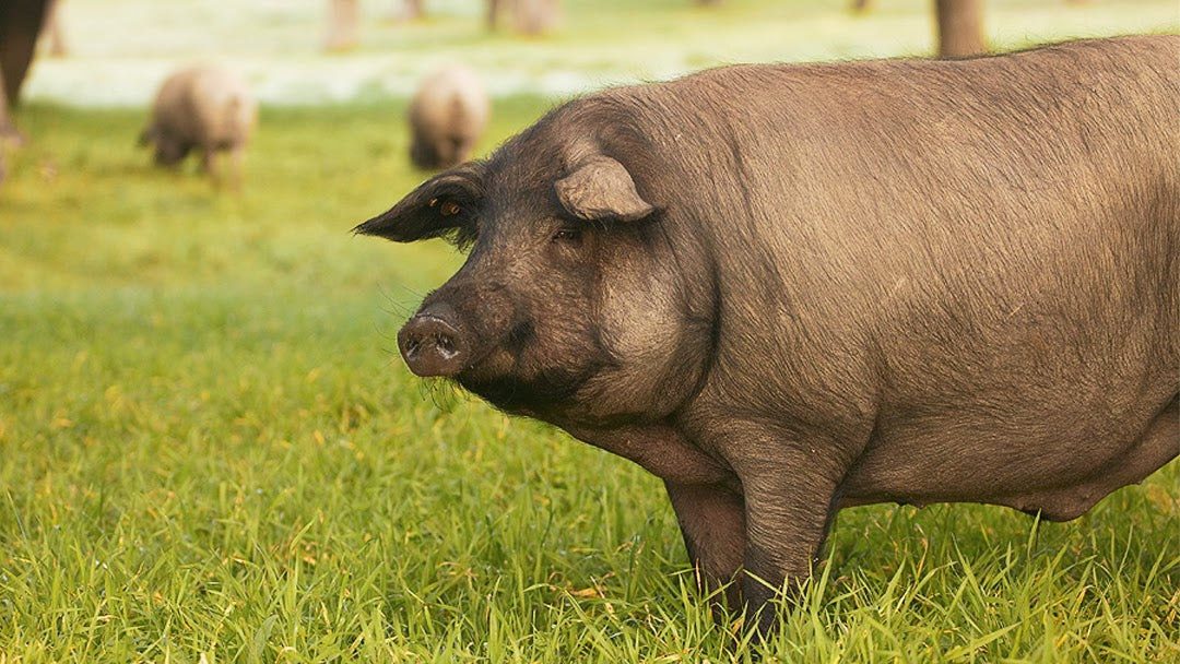 El cerdo ibérico es una especie única con características que lo diferencia de otros animales de la misma especie, como, por ejemplo, la capacidad de infiltrar grasa en el músculo. Físicamente hablando, estos animales presentan una cabeza bien proporcionada y un hocico puntiagudo, a diferencia de otro tipo de cerdos, el ibérico tiene un cuello potente, la papada caída, las orejas de tamaño mediano en forma de visera y un amplio vientre. Sus extremidades, las que más nos interesan a la hora de hablar de jamón, son finas.